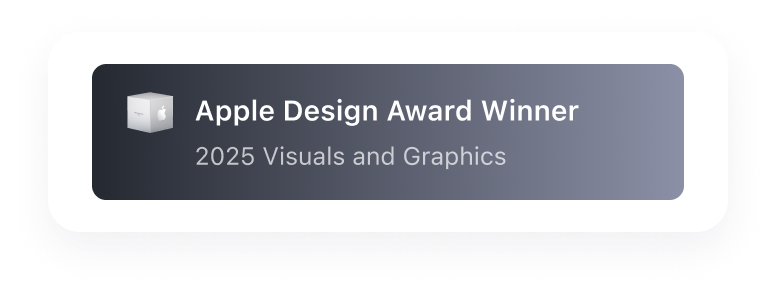 Apple Design Award card with dark theme.