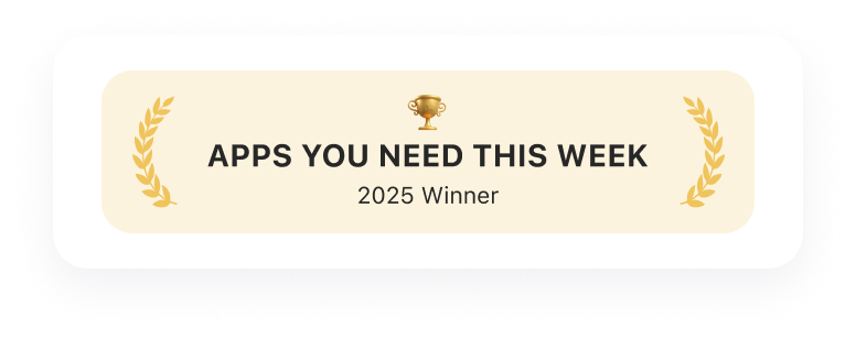 A celebratory banner for "App of the Year" recognition.