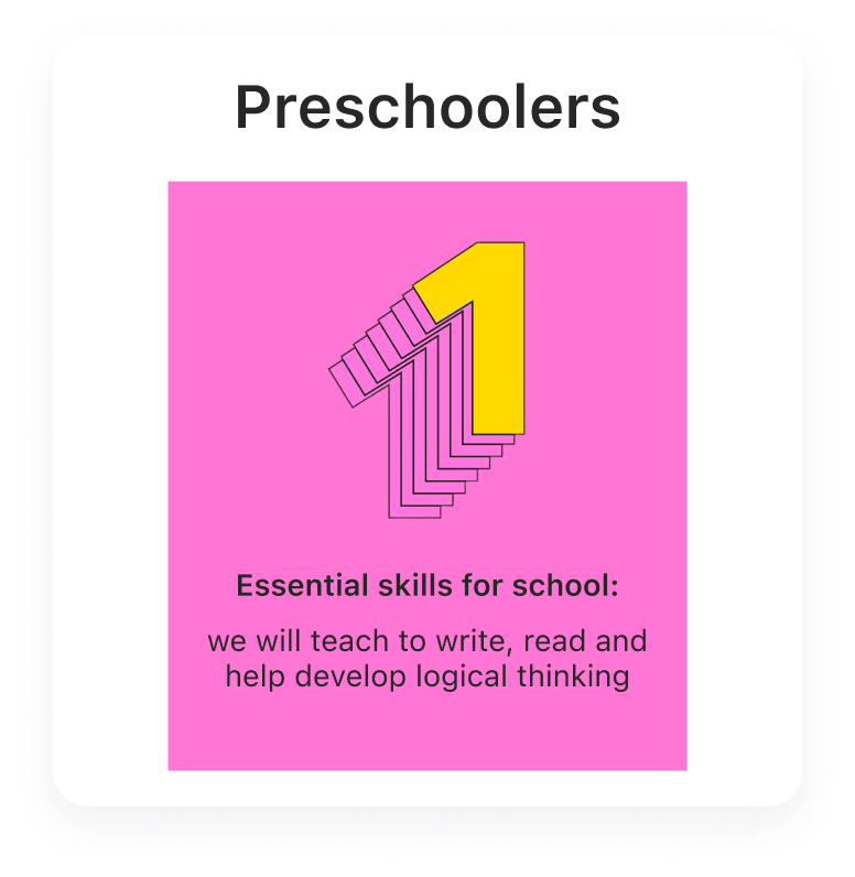 Colorful cards with titles displayed above each card, featuring images and descriptive text. Great for categorized content like age groups, skill levels, or product tiers.