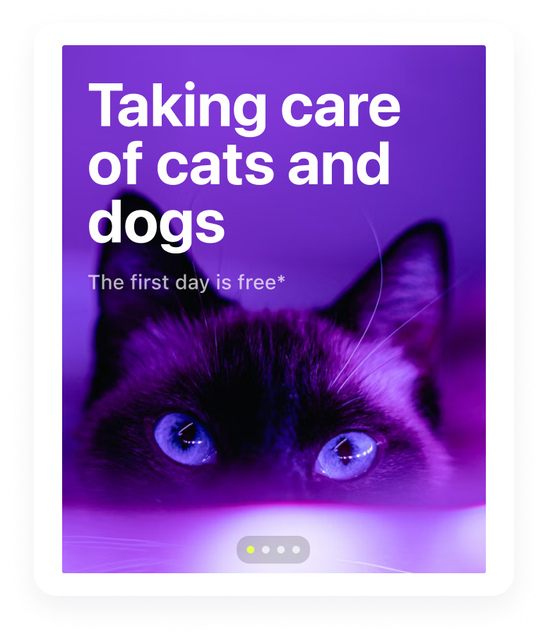 A full-width image carousel with large, bold headings overlaid on background images. Perfect for visual storytelling and immersive content presentation.