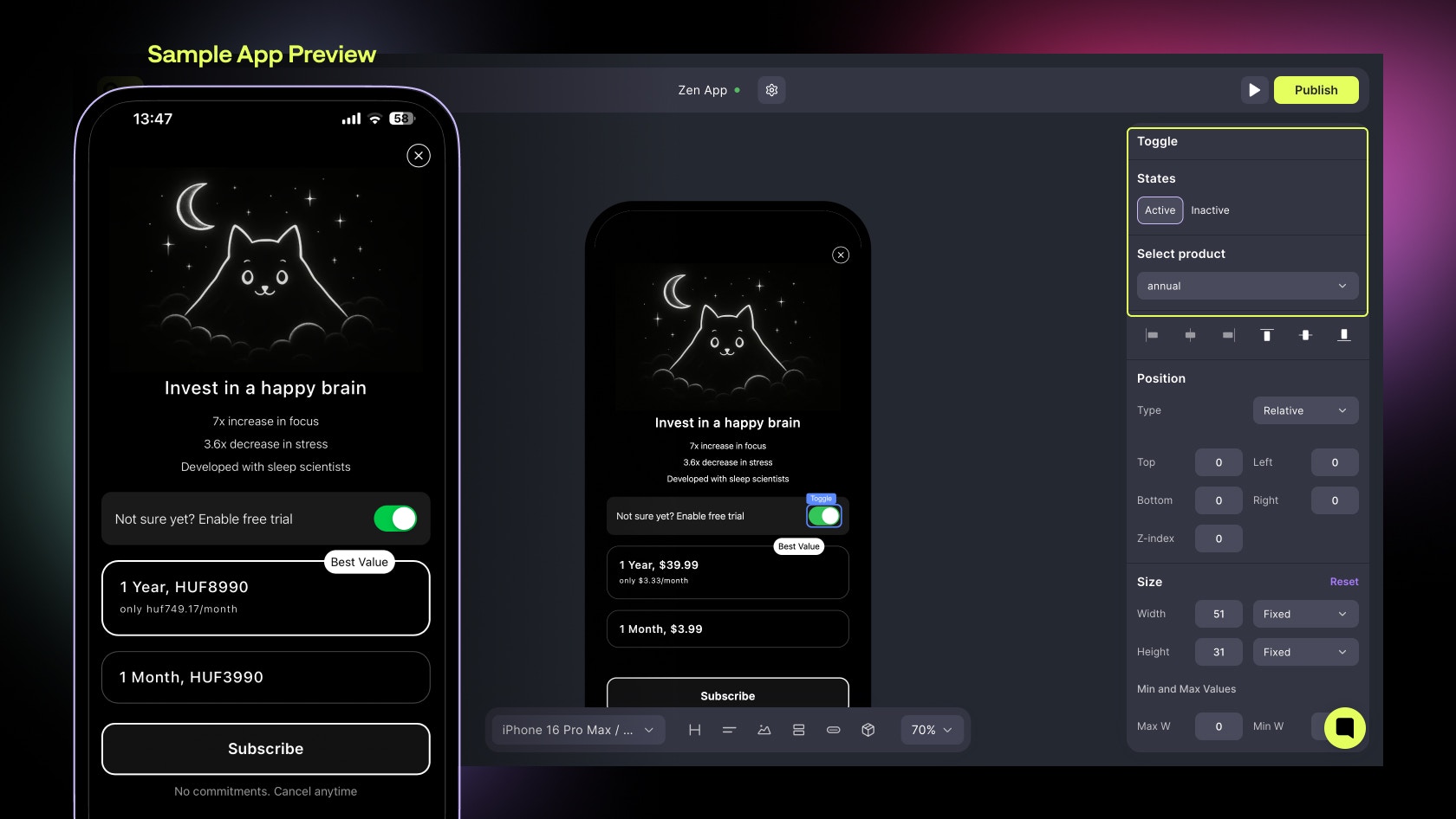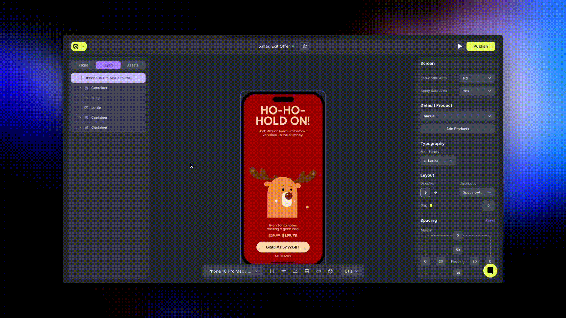 Remember to link each product container to your actual Qonversion products before publishing. Templates use placeholder product IDs that need to be updated.