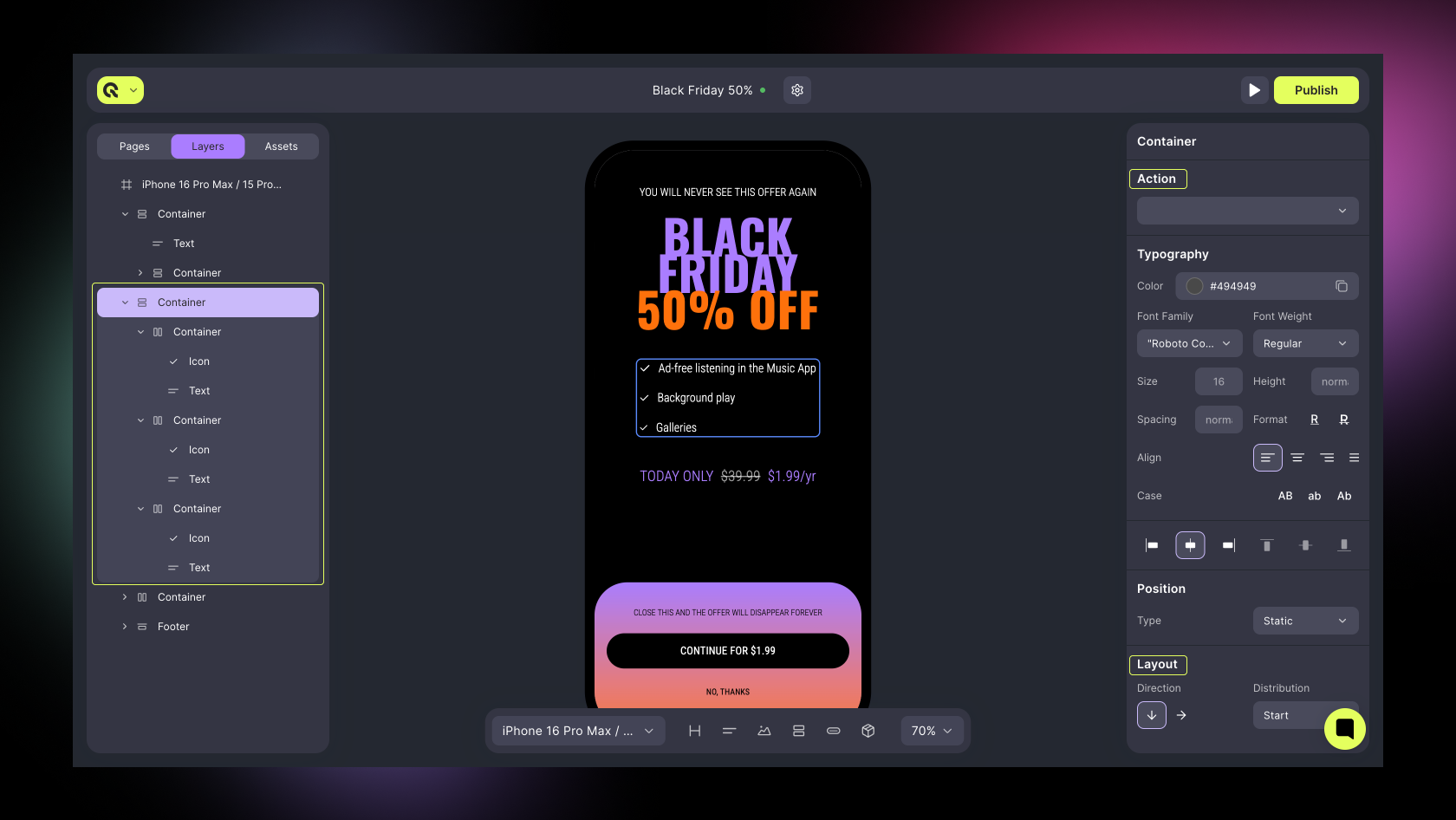 Tip: Use containers as “cards” for product blocks or grouped pricing sections.