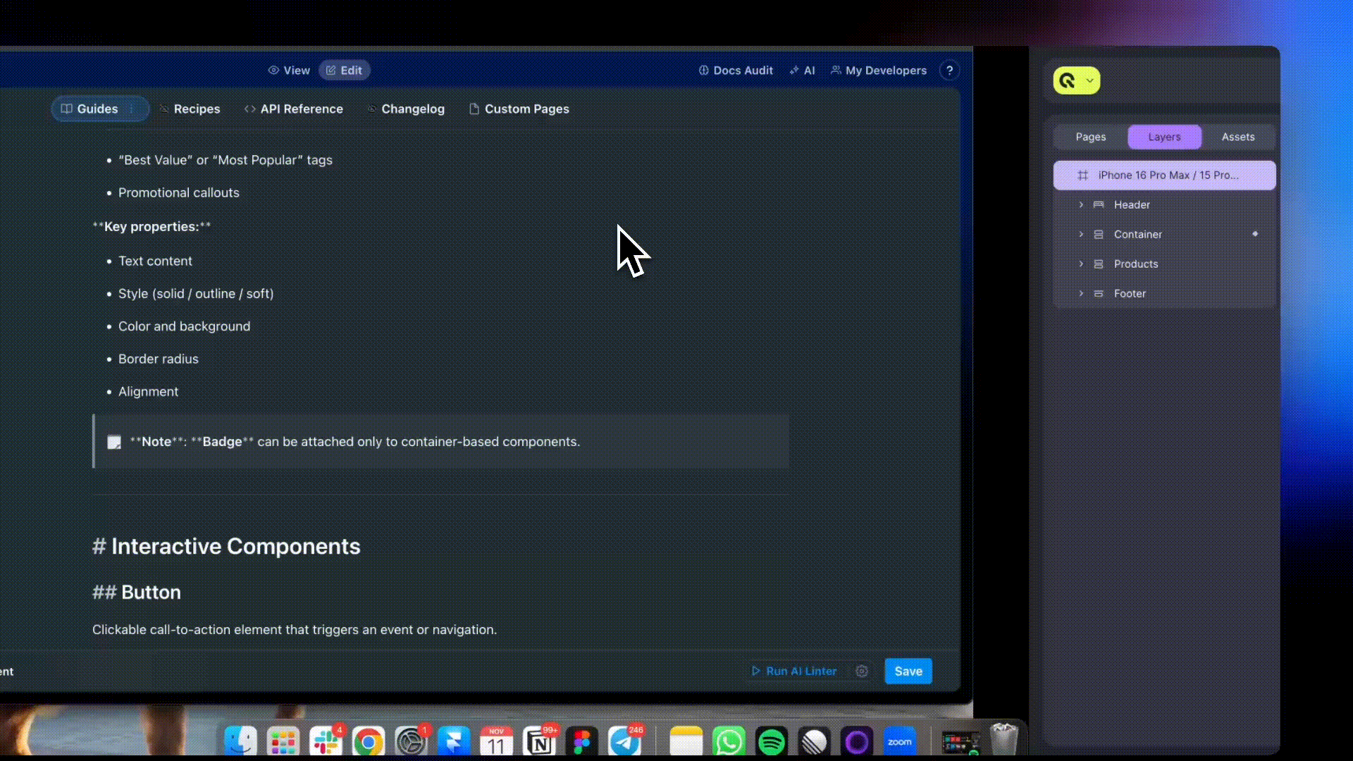 | Container | ✅ | ✅ | Core layout block that groups and aligns other components. | Organizes and structures multiple elements |