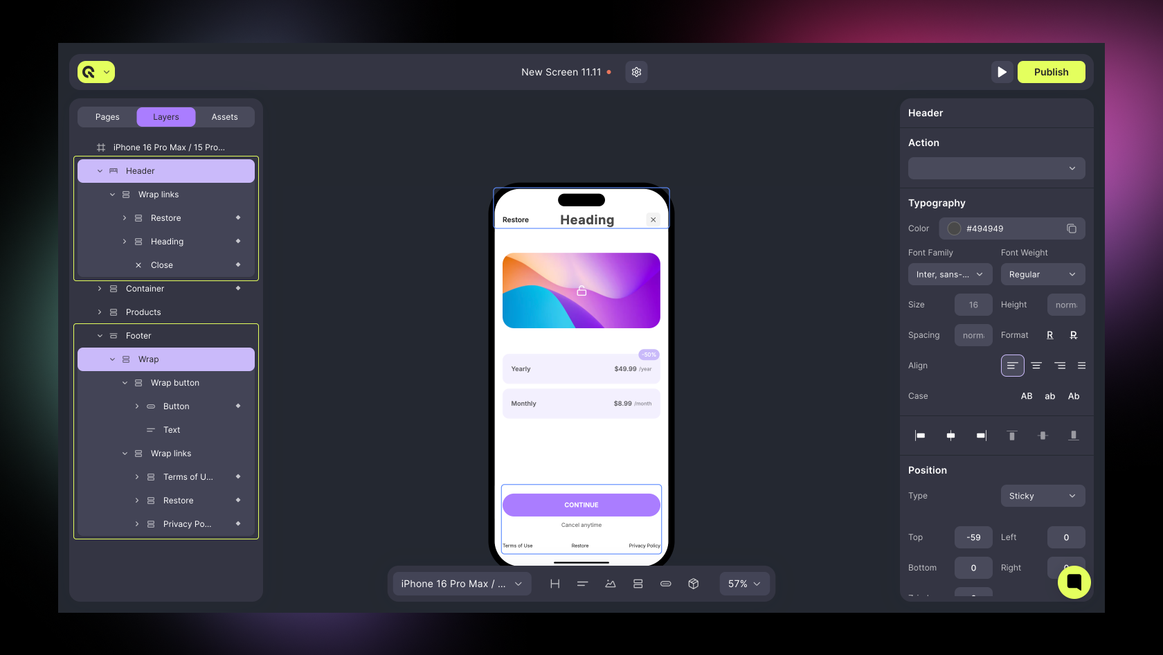 Prebuilt Components are ideal for quickly prototyping screens or getting started with proven layouts. You can always customize every aspect after adding them to your canvas.