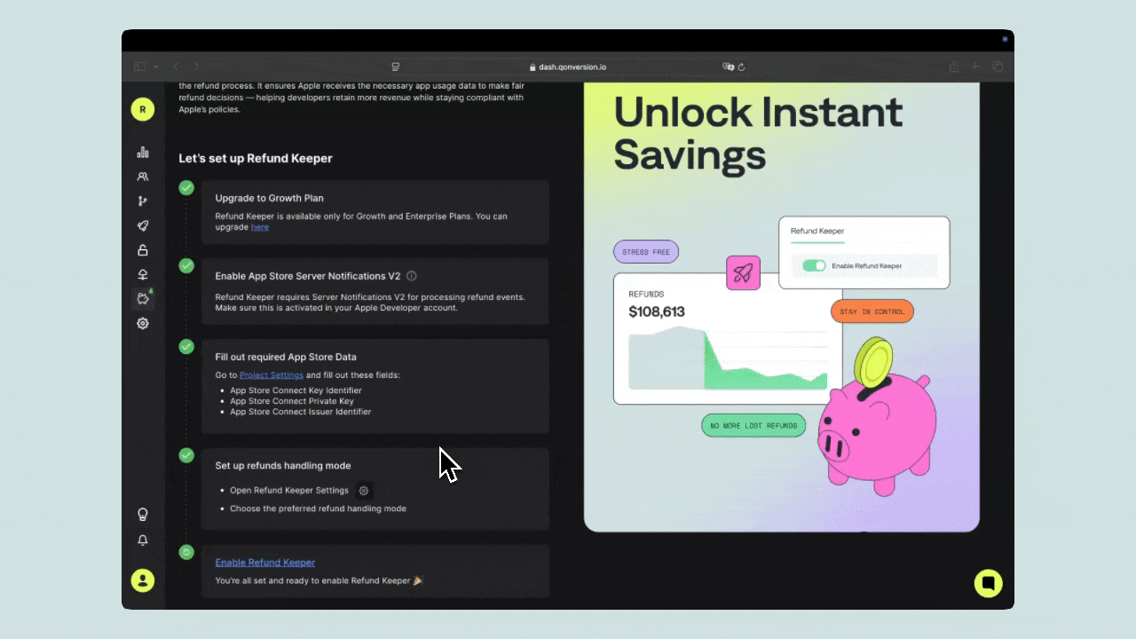 - Click Enable Refund Keeper to activate the feature.