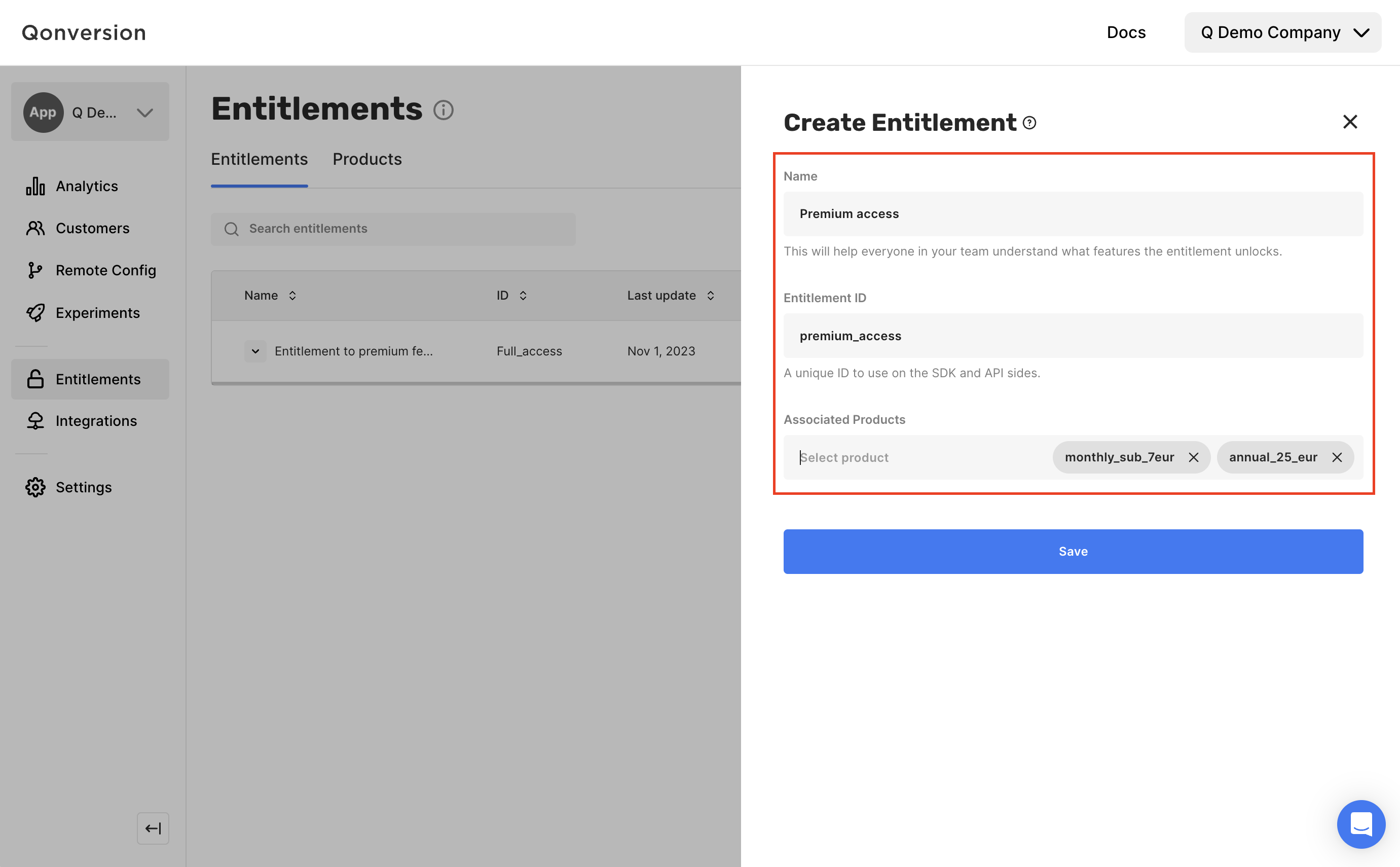 - Name: short description that helps everyone in your team understand what features the entitlement unlocks.