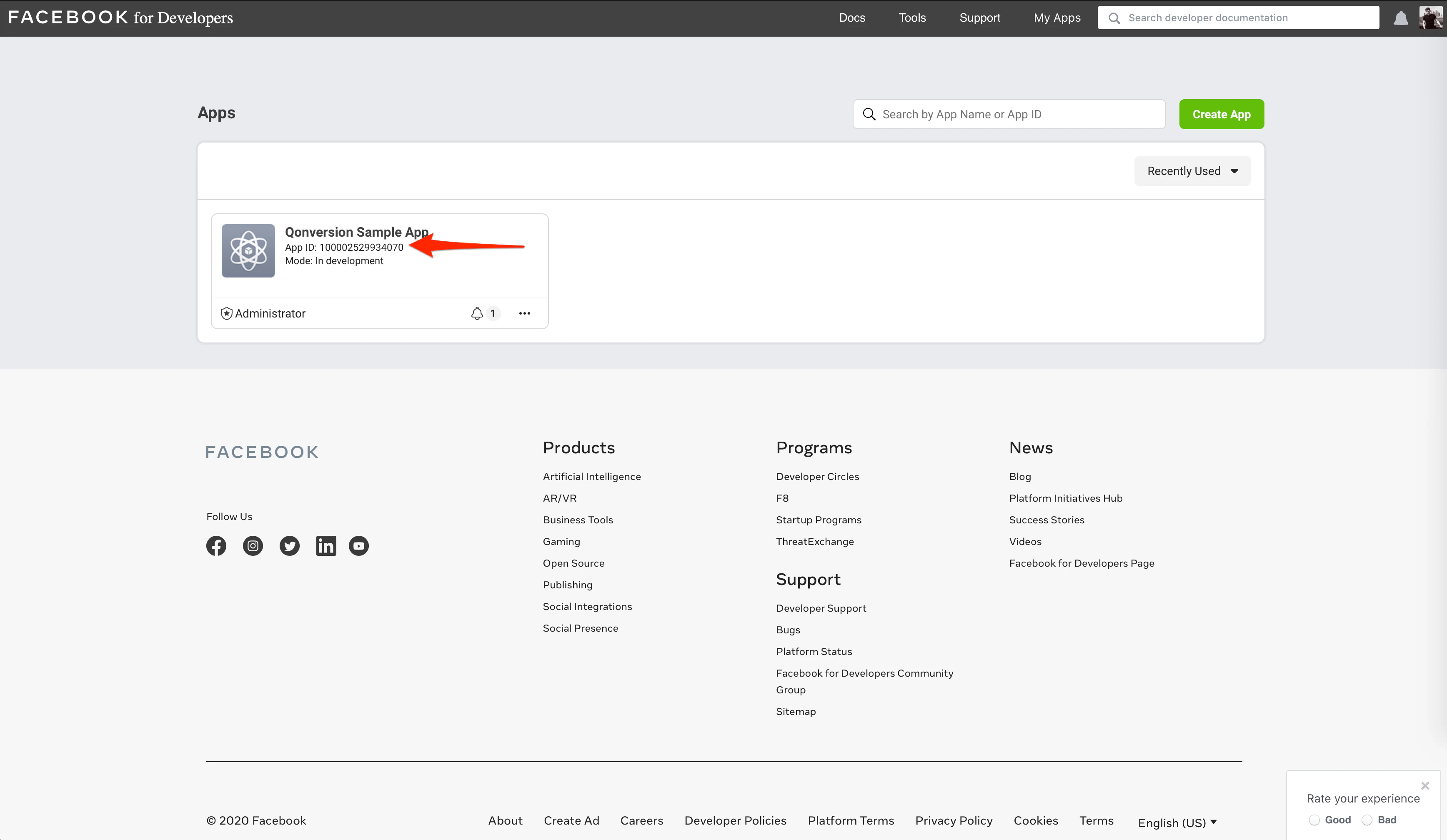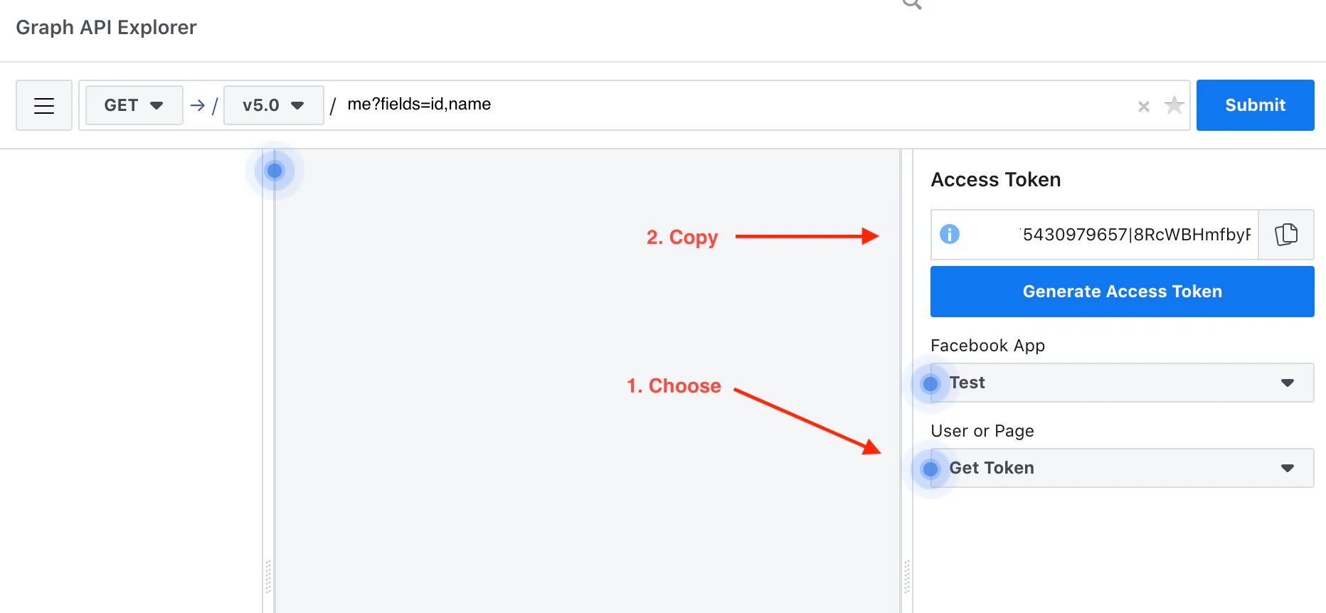 - Get your Facebook App Access Token. You can use this URL to access your token. Choose your Application in the top-right corner. Select the Get App Token and copy.