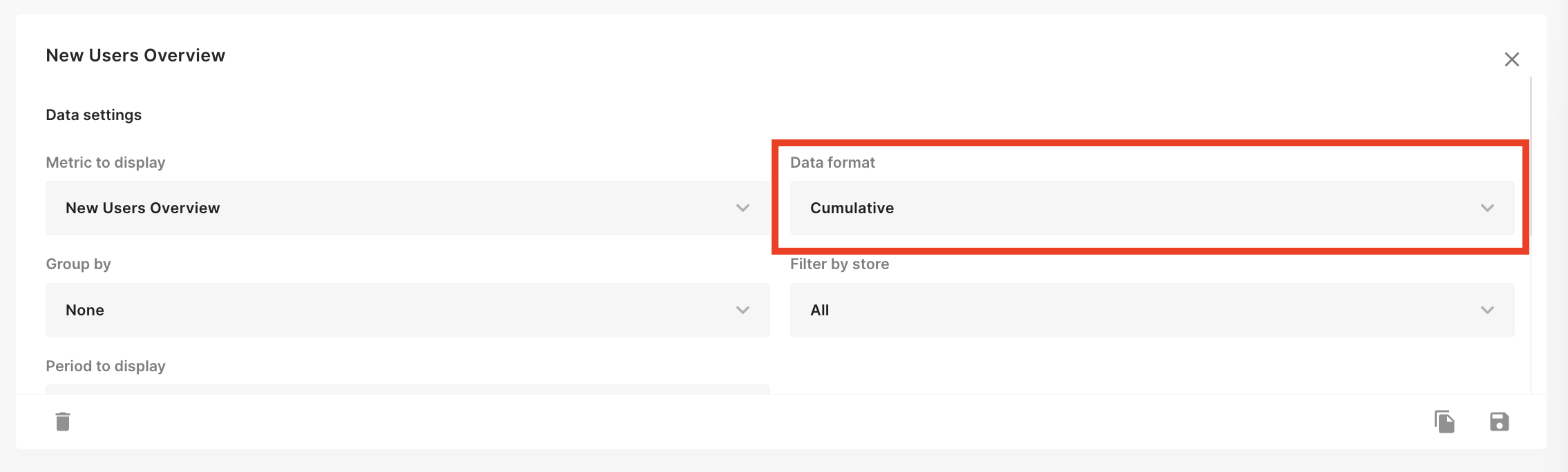 In the widget’s settings, you can find an option to choose cumulative data format.