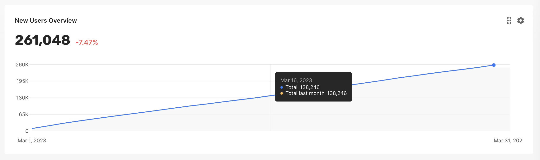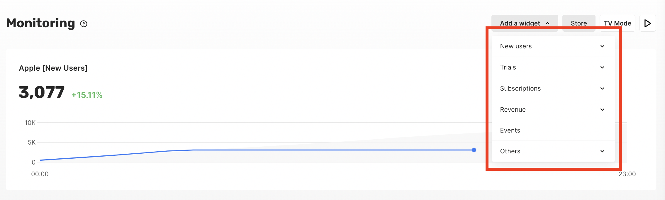 You can add a widget with any metric that is present in the Qonversion Dashboard:- New Users Overview