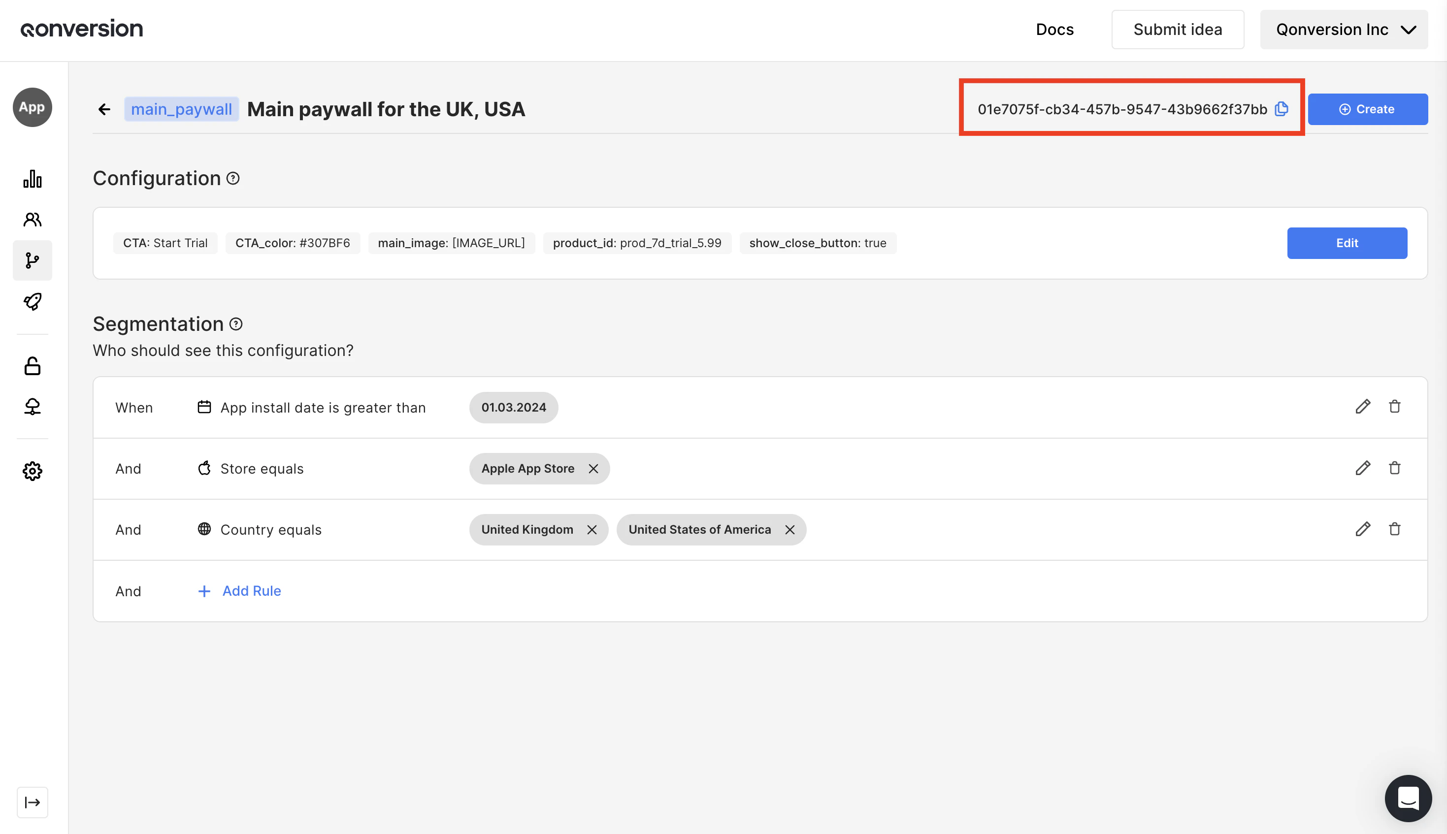 remoteConfigmethod. Now Qonversion SDK returns data associated with previously set remote config. - Validate your app logic without launching the configuration.