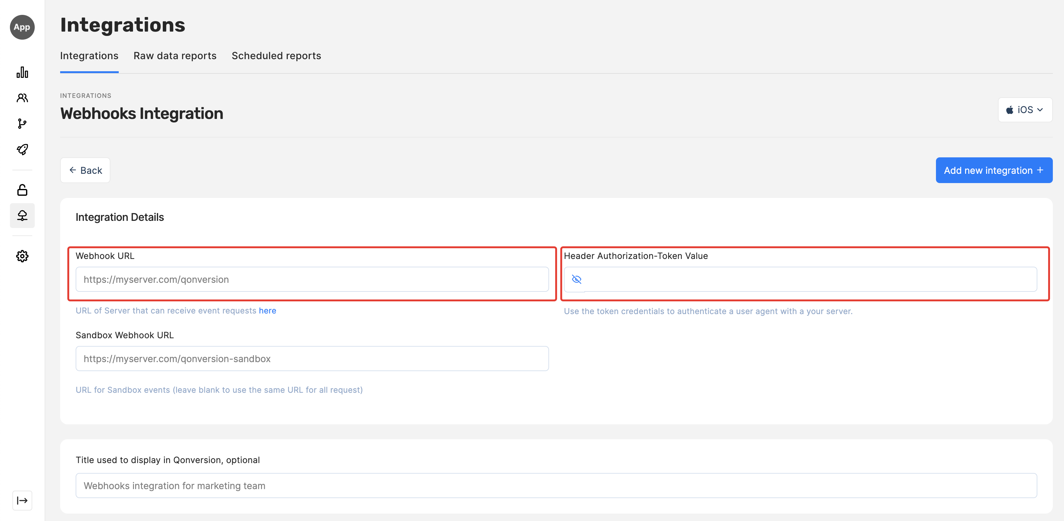 - Press the “Add new integration” or “Save” button. If the endpoint server returns a 200 response code, the integration is activated.